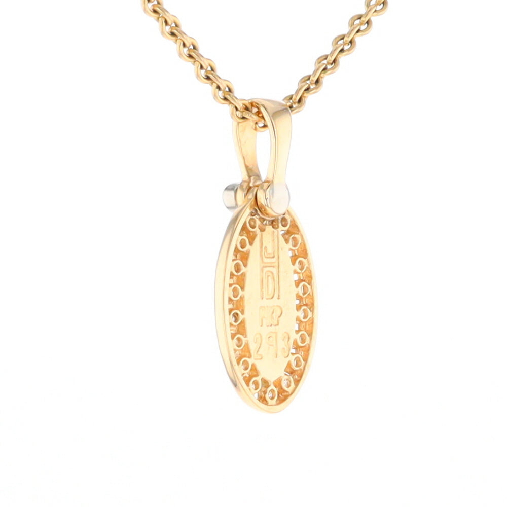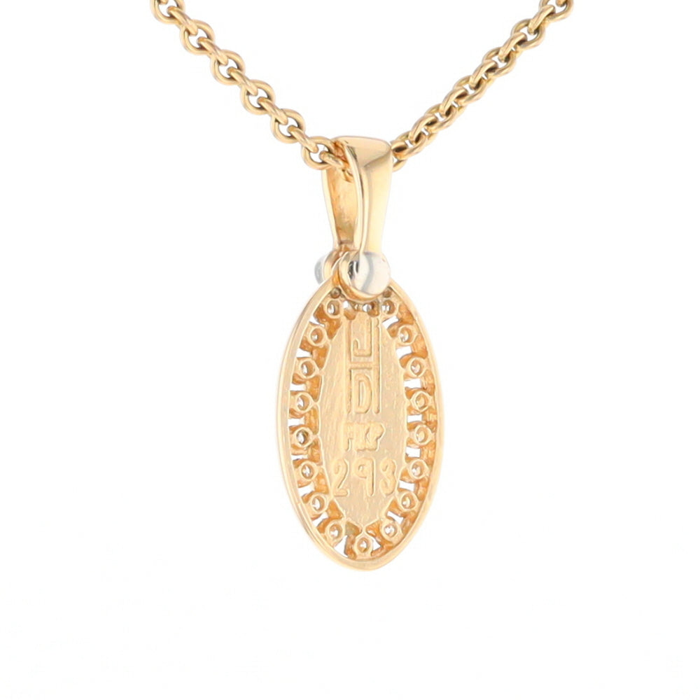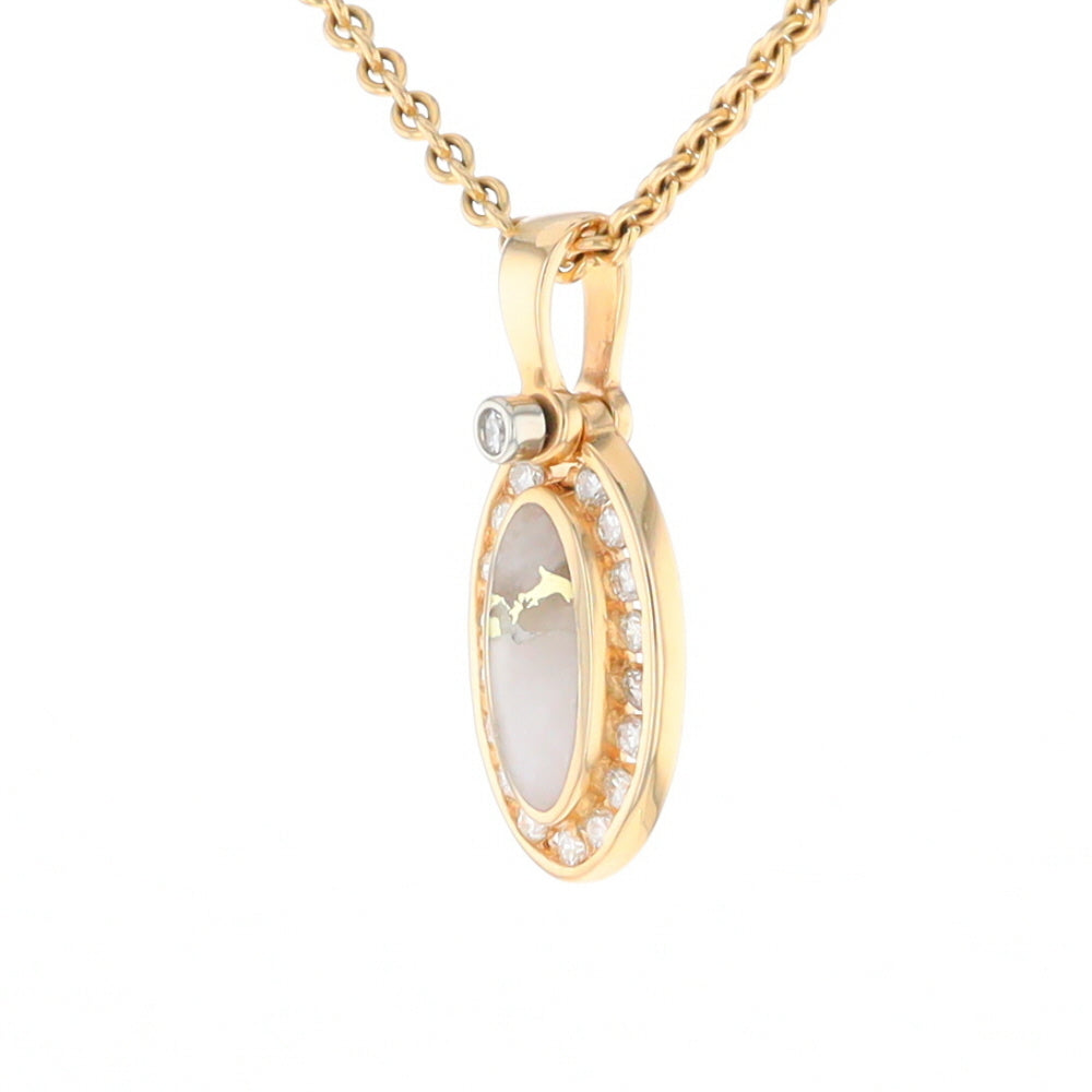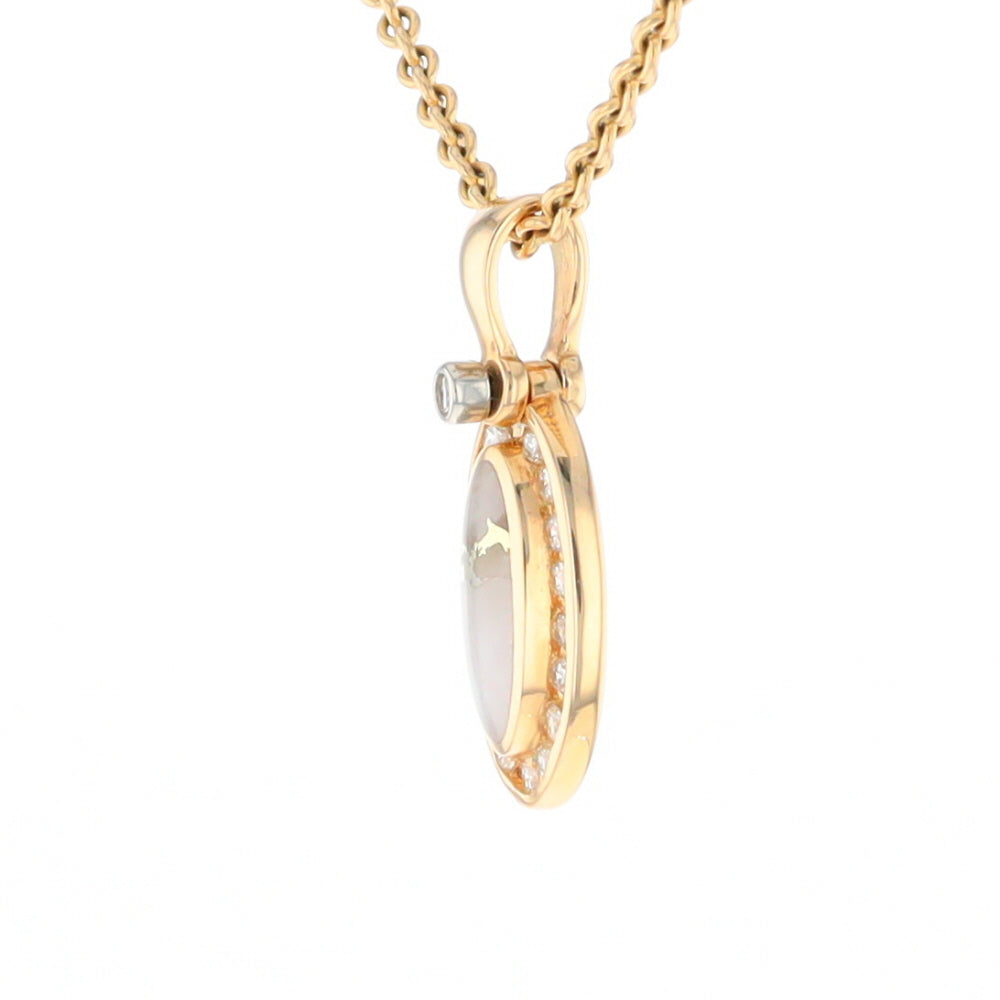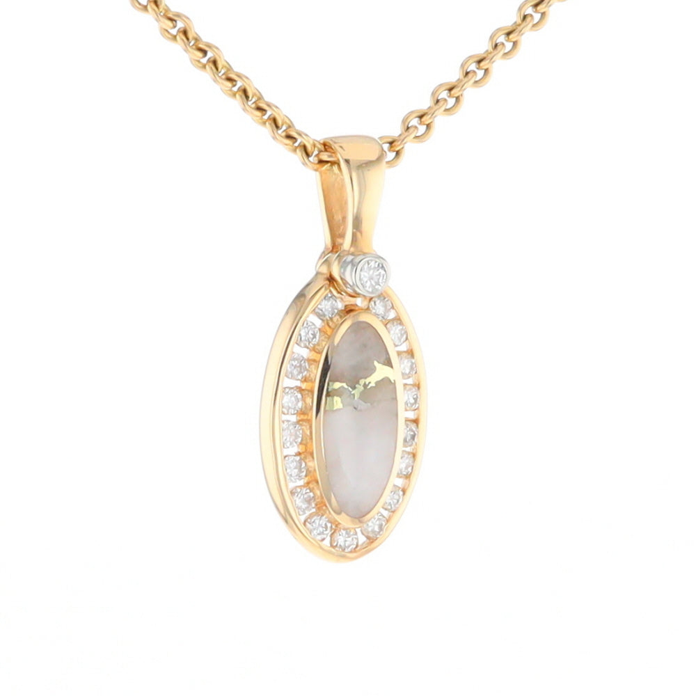 Gold Quartz Necklace Oval Inlaid Halo Design .22ctw Diamond Pendant. 14Kt Yellow Gold. Superior Quality Quartz.
