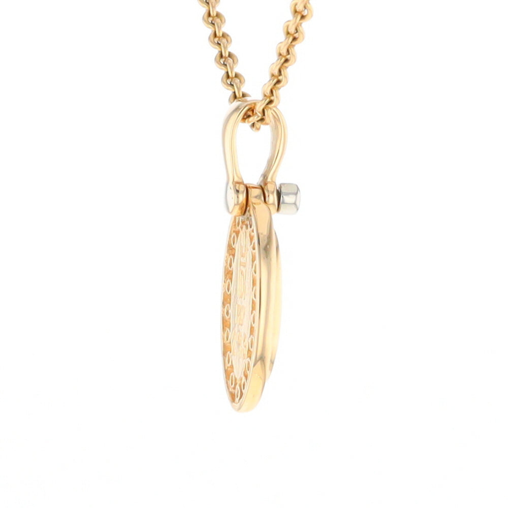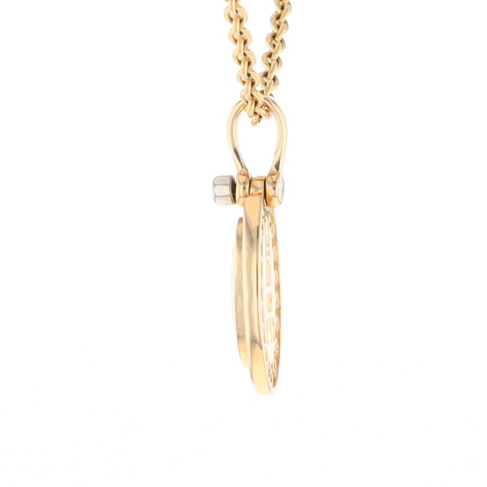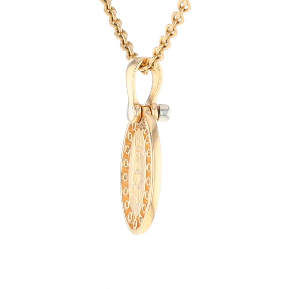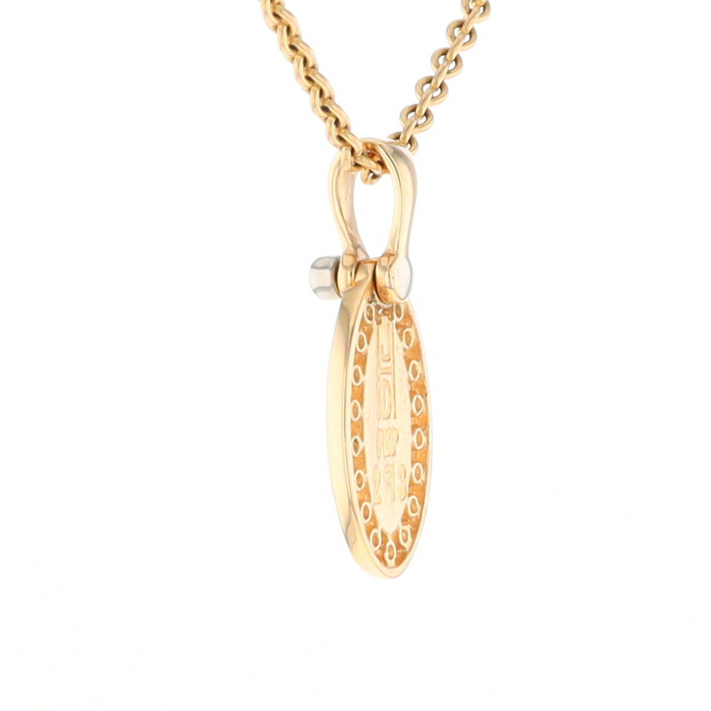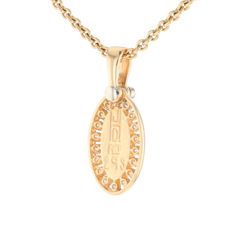 Gold Quartz Necklace Oval Inlaid Halo Design .22ctw Diamond Pendant. 14Kt Yellow Gold. Superior Quality Quartz.
