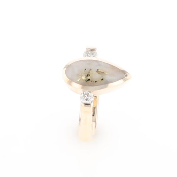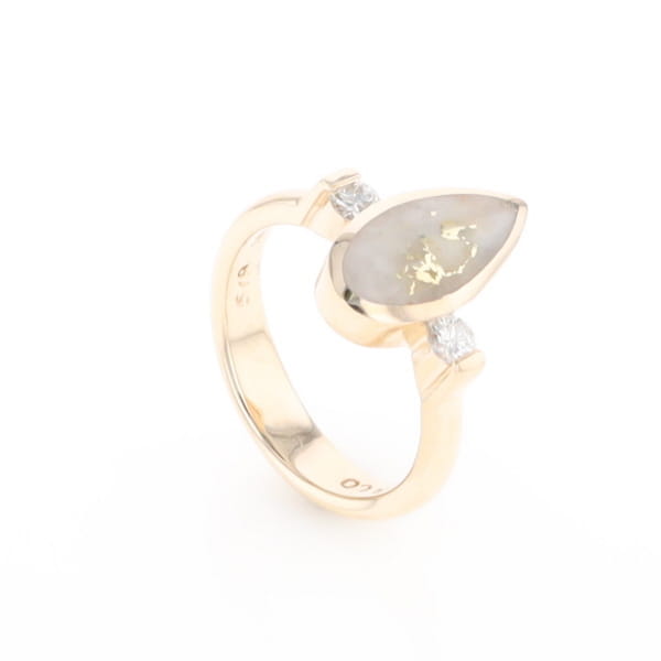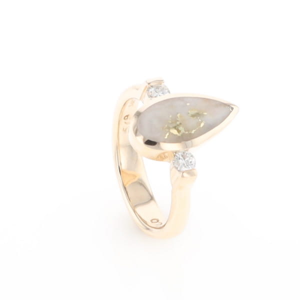Gold Quartz Ring Pear Shape Inlaid with .18ctw Round Diamonds