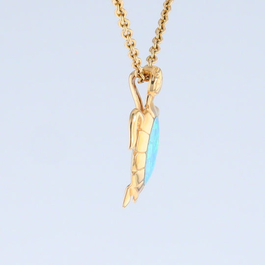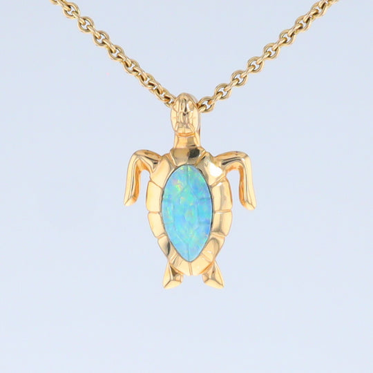 Australian Opal Inlaid Sea Turtle Pendant. Superior Quality Australian Opal. 14Kt Yellow Gold.